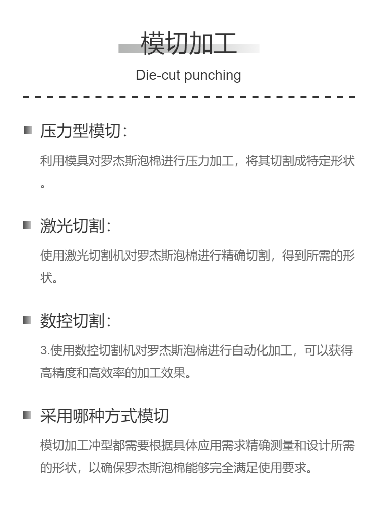 電子產(chǎn)品:廣泛用于手機(jī)、電腦等電子產(chǎn)品內(nèi)部的防震、隔音和散熱材料。 汽車工業(yè):用于汽車座椅、內(nèi)飾的隔音以及舒適度提升,保障乘客的出行體驗(yàn)。 醫(yī)療器械:因其優(yōu)良的生物相容性,常應(yīng)用于醫(yī)療器械和設(shè)備的防護(hù)材料。 服裝行業(yè):用于防水、透氣的服飾內(nèi)襯,提高穿著的舒適感。 模切沖型的優(yōu)勢考慮到不同場合的需求,深圳市楷銘科技有限公司提供的模切沖型設(shè)計(jì)能夠滿足客戶的個(gè)性化需求。模切技術(shù)使得聚氨酯泡棉能夠被加工成各種特定形狀和尺寸,這為應(yīng)用的靈活性提供了可能,極大地?cái)U(kuò)展了其使用范圍。