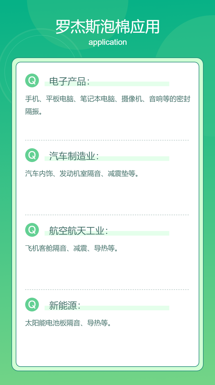 高吸濕性:微孔結(jié)構(gòu)使其能夠有效吸收水分,適合應(yīng)用于需要水分控制的場合。 優(yōu)異的彈性:該材料具有良好的恢復(fù)性,能夠有效承受外力,而不會(huì)變形,確保長期使用穩(wěn)定性。 良好的透氣性:微孔設(shè)計(jì)提供了良好的氣體流通性,避免了在密閉環(huán)境中產(chǎn)生的悶熱感。 較強(qiáng)的化學(xué)穩(wěn)定性:聚氨酯泡棉在化學(xué)環(huán)境中表現(xiàn)出良好的耐腐蝕性,可廣泛用于工業(yè)應(yīng)用。 應(yīng)用領(lǐng)域的廣泛性羅杰斯微孔聚氨酯泡棉470的特性使其成為多個(gè)行業(yè)中ue的材料: