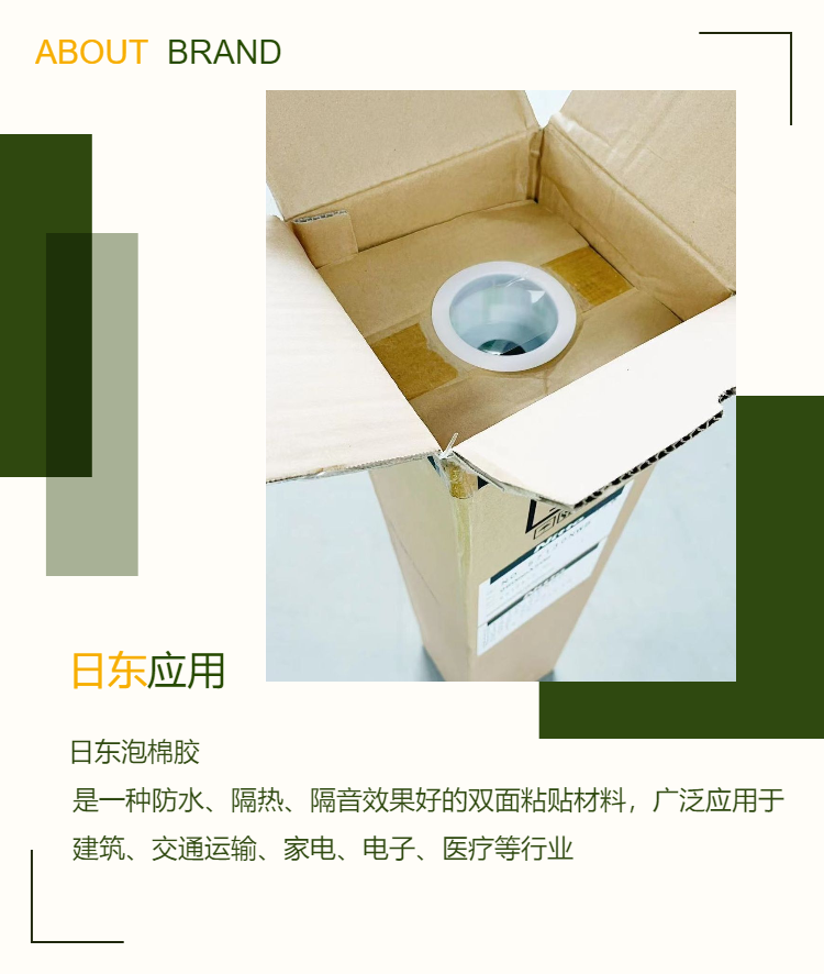 豐富的應(yīng)用領(lǐng)域日東泡棉膠的應(yīng)用領(lǐng)域非常廣泛,其youxiu的粘合性能和高適應(yīng)性使其在許多行業(yè)中表現(xiàn)出色。例如: